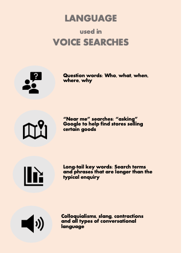 Consumers using voice search are using conversational language, and these queries are longer than regular text-based searches.